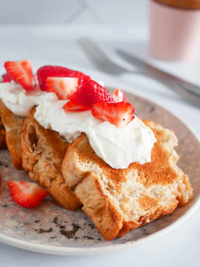 Getoast suikerbrood met yoghurt en aardbeien | Foodaholic.nl