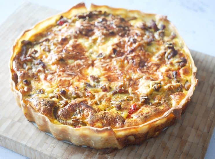 - Zet in de voorverwarmde oven en bak de quiche in 45 minuten gaar.