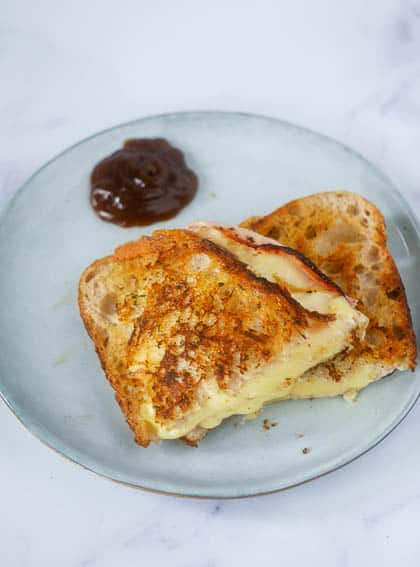 2. Bak vervolgens de tosti goudbruin onder de grill, in een koekenpan of in het tosti-ijzer.